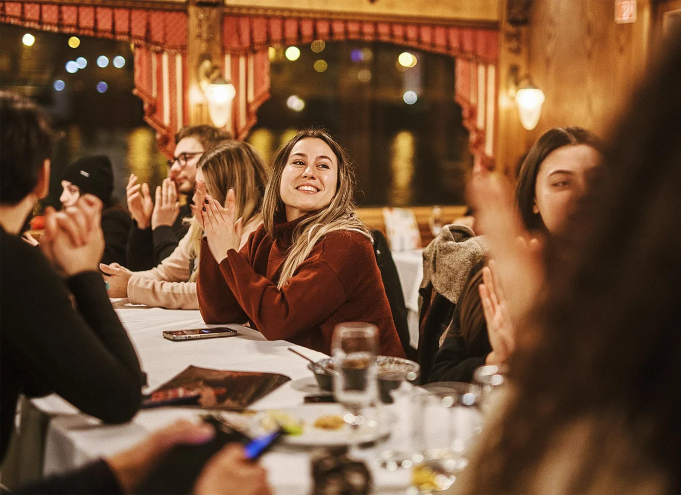 Entspanne dich während der Fahrt zu den Klängen der Live-Musik an Bord, die dem Abend ein warmes und authentisches ungarisches Ambiente verleiht. Deine Kreuzfahrt beinhaltet auch eine köstliche Portion traditioneller Gulaschsuppe, eines der beliebtesten Gerichte Ungarns, begleitet von frisch zubereiteten Langos, die für ihre knusprige Textur und ihren reichen Geschmack bekannt sind.