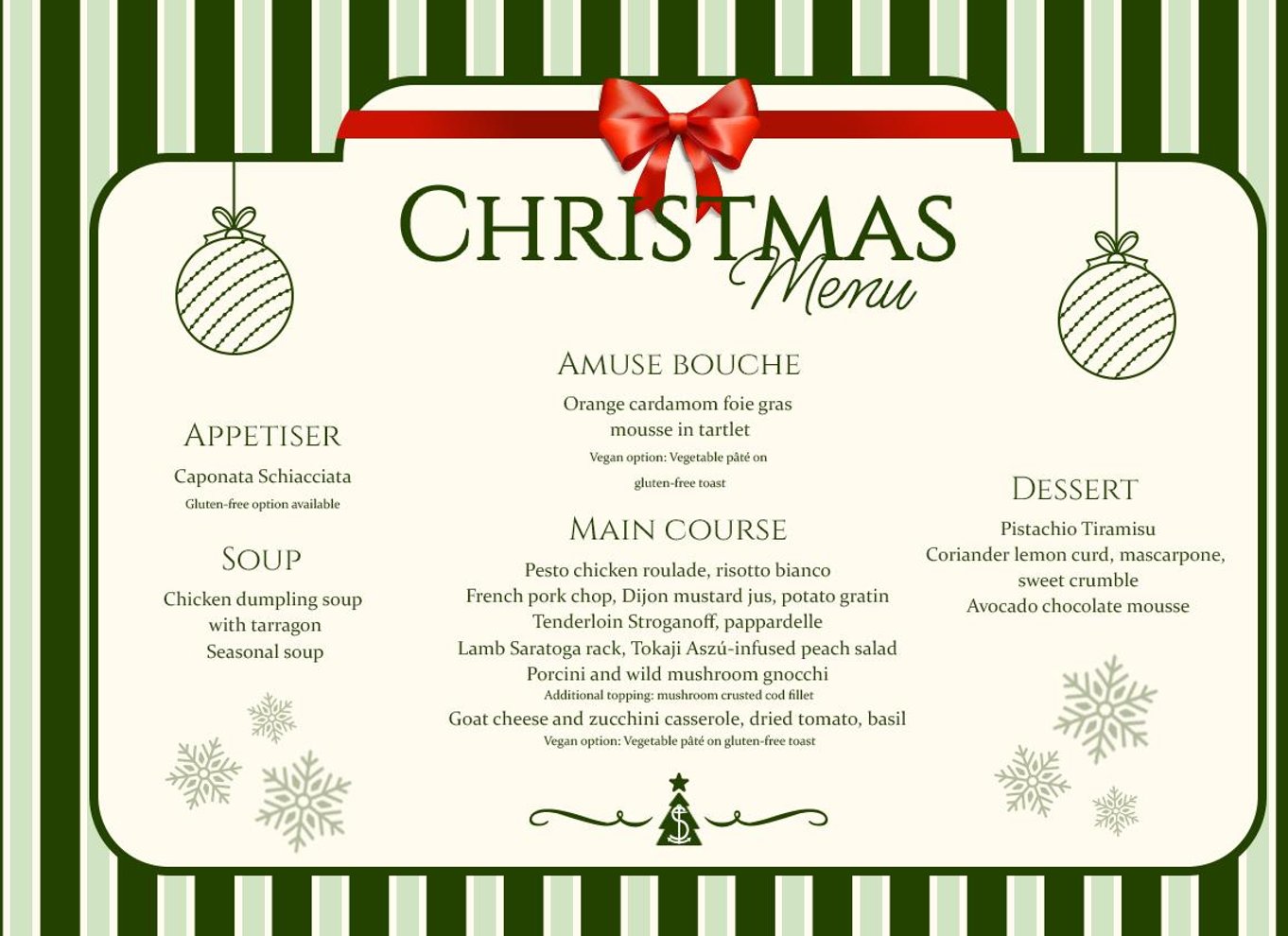 Genieße ein 4-Gänge-Menü und wähle aus Amuse-Bouche, zwei Suppen, sechs Hauptgerichten und drei Desserts. Auch für Veganer und Vegetarier ist gesorgt.