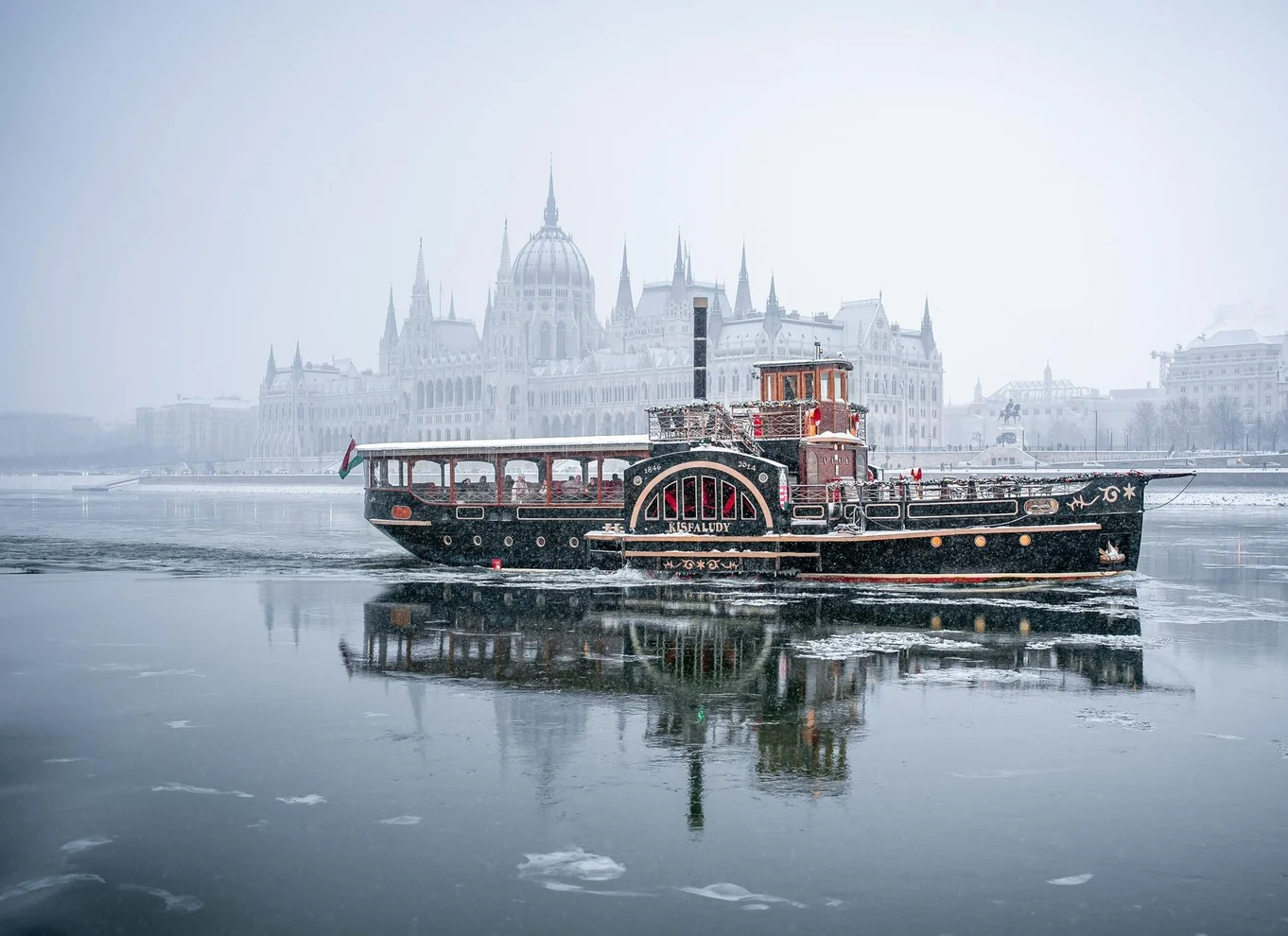 Subirás a uno de los dos barcos históricos únicos: el vapor de ruedas Kisfaludy o el vapor de ruedas Hableány. Ambos barcos son recreaciones fieles de los vapores de ruedas del siglo XIX, buques hermanos con diseños similares y relevancia histórica, que ofrecen la misma experiencia panorámica mientras pasan por los monumentos más emblemáticos de Budapest.