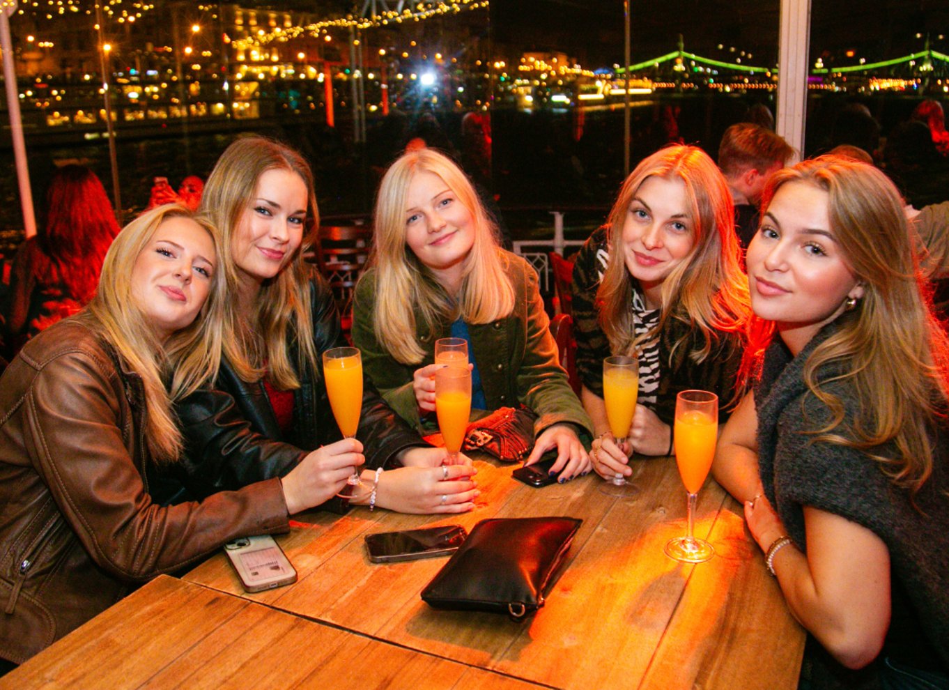 - 90 minutos de cócteles de prosecco ilimitados (desde que subas al barco hasta que atraque)