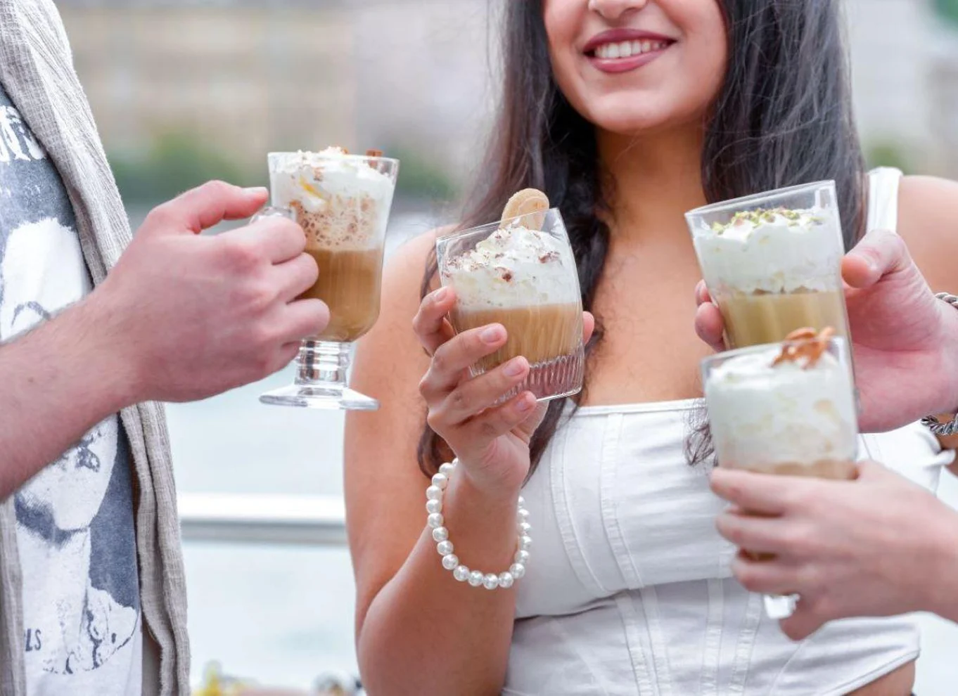 Durante la crociera, ti offriamo una bevanda gratuita a tua scelta: un pumpkin spice latte, un bicchiere di vino, una birra fresca o un'opzione analcolica. Con una vasta selezione di bevande e caffè speciali, ce n'è per tutti i gusti.
