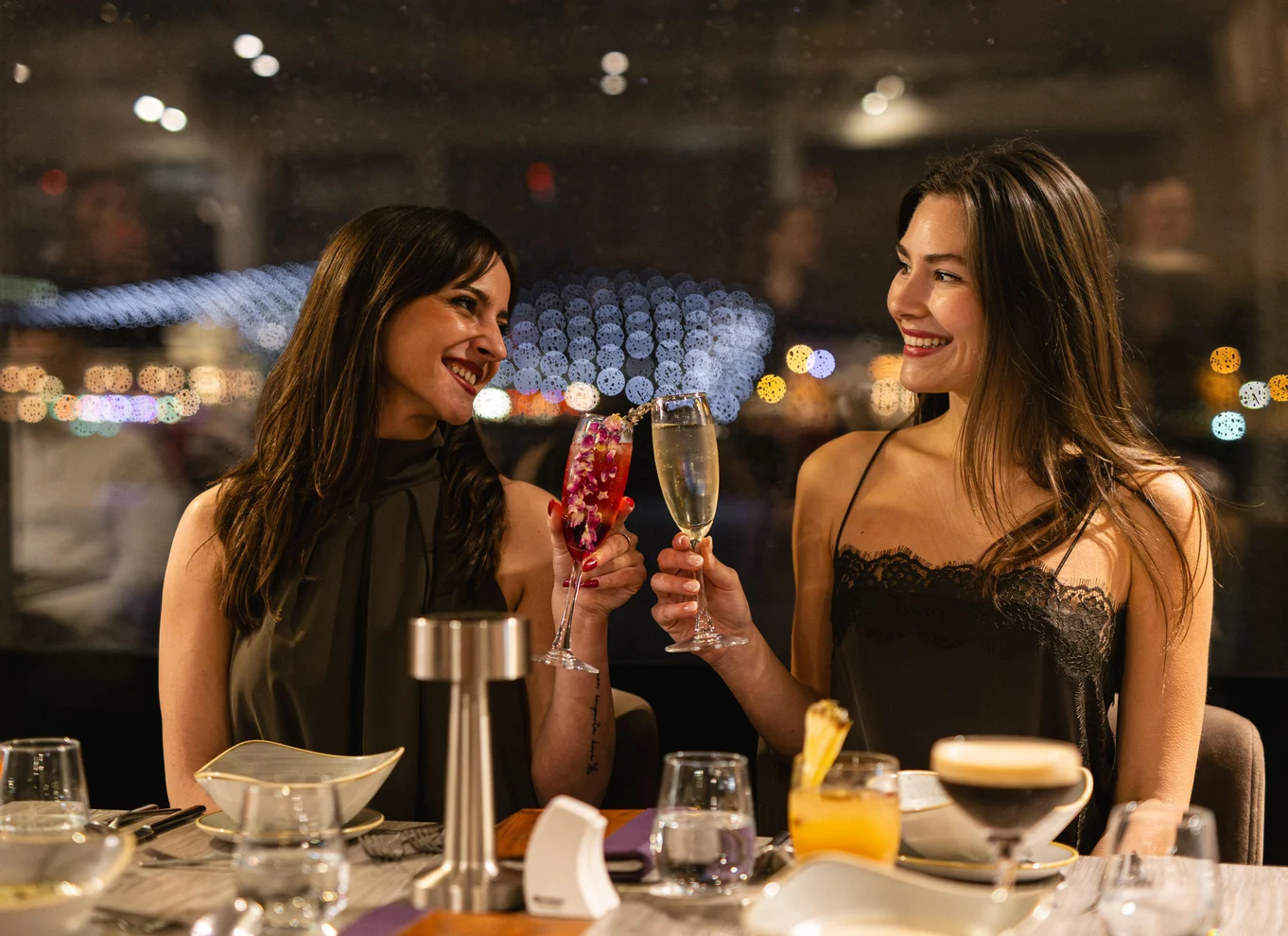 - Priviți reperele iluminate ale orașului desfășurându-se în fața ochilor dvs. în timp ce luați masa